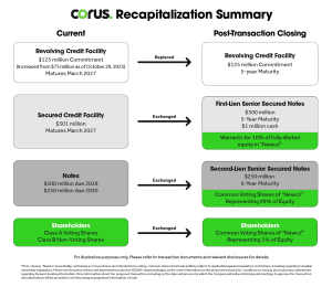 After conducting a thorough strategic review process, Corus’ Board of Directors unanimously recommends that the Senior Noteholders and Shareholders vote FOR the Recapitalization Transaction at the Special Meetings.